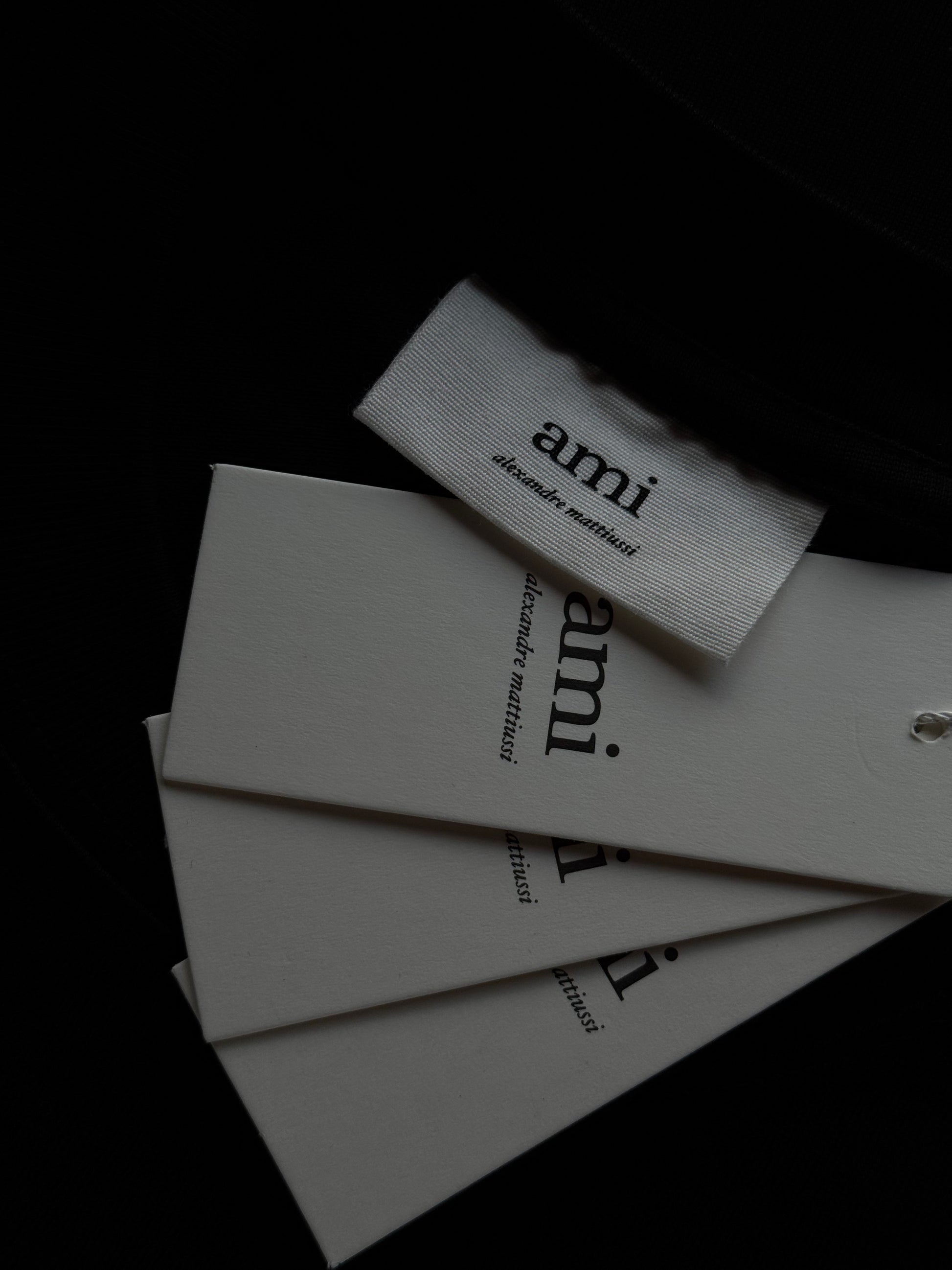 Playera Ami En Color Negro con Bordado Efecto Crochet Rojo