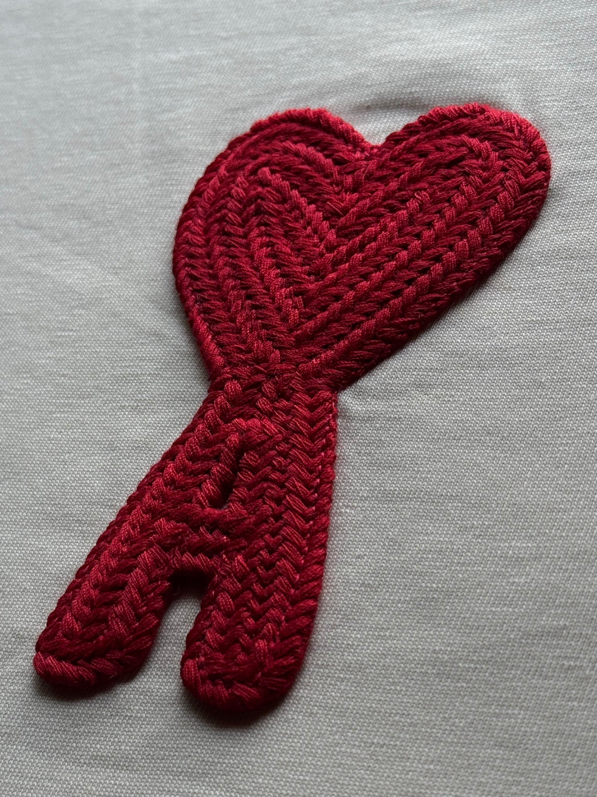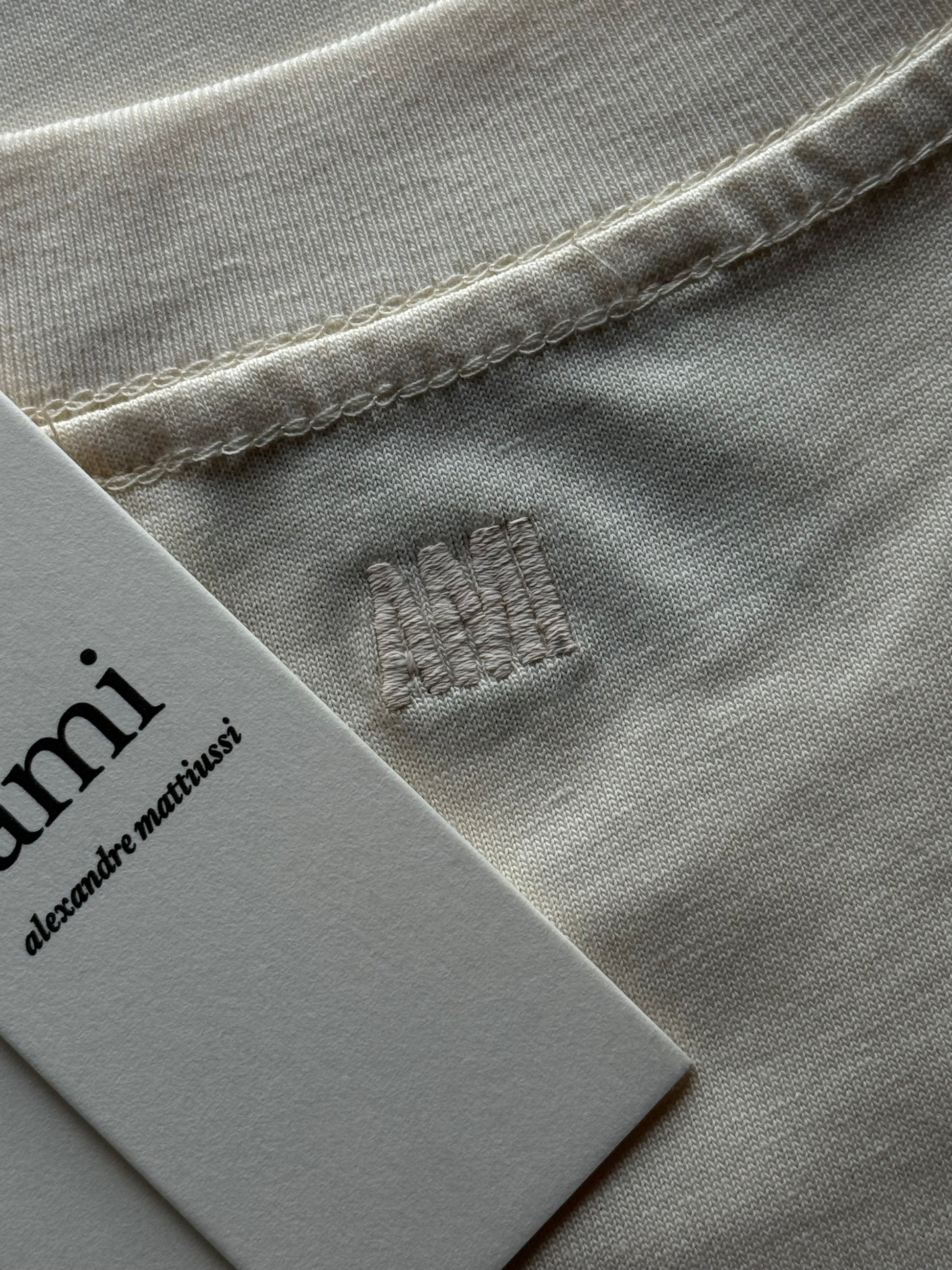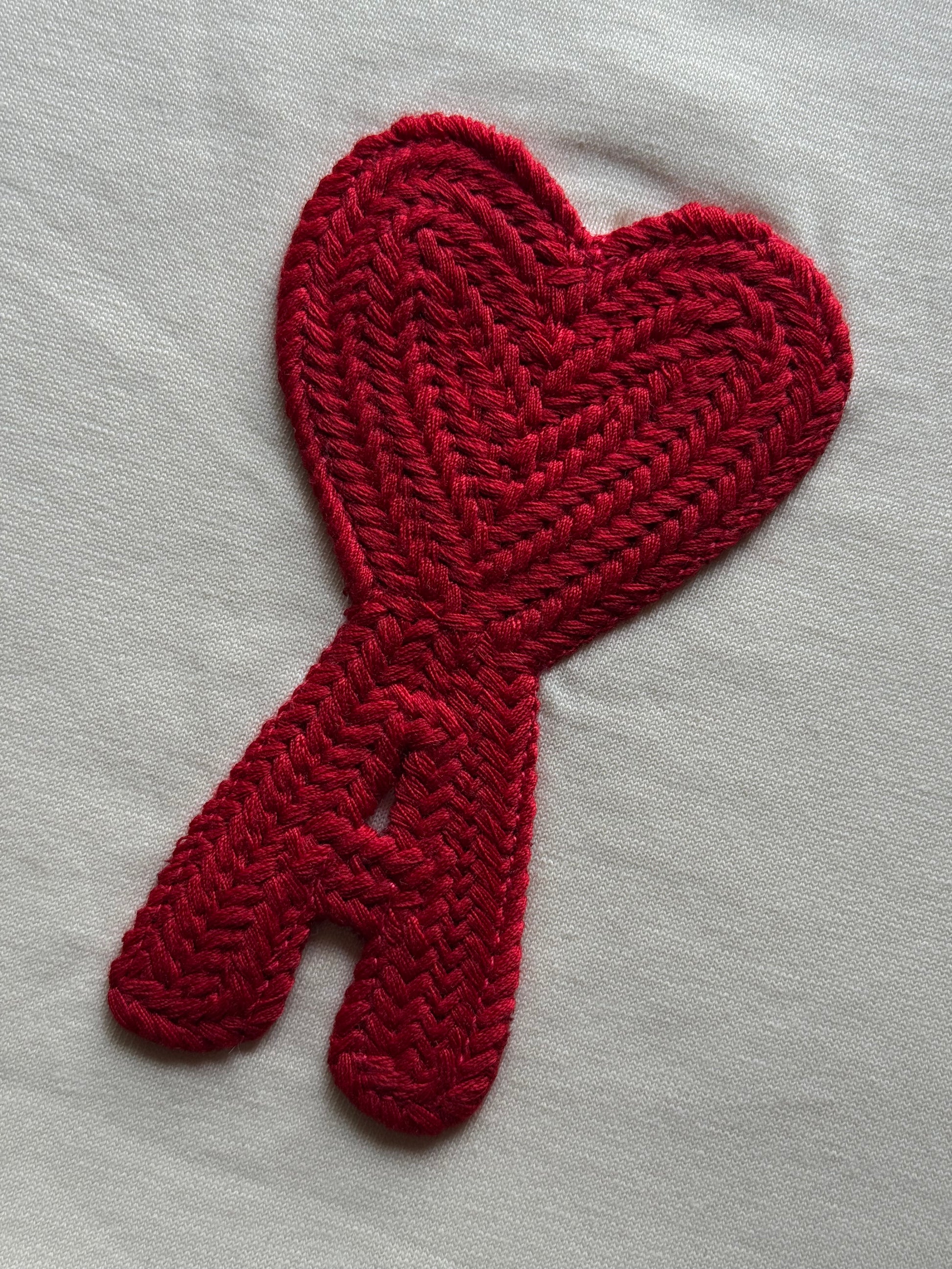 Playera Ami En Color Crema con Bordado Efecto Crochet Rojo