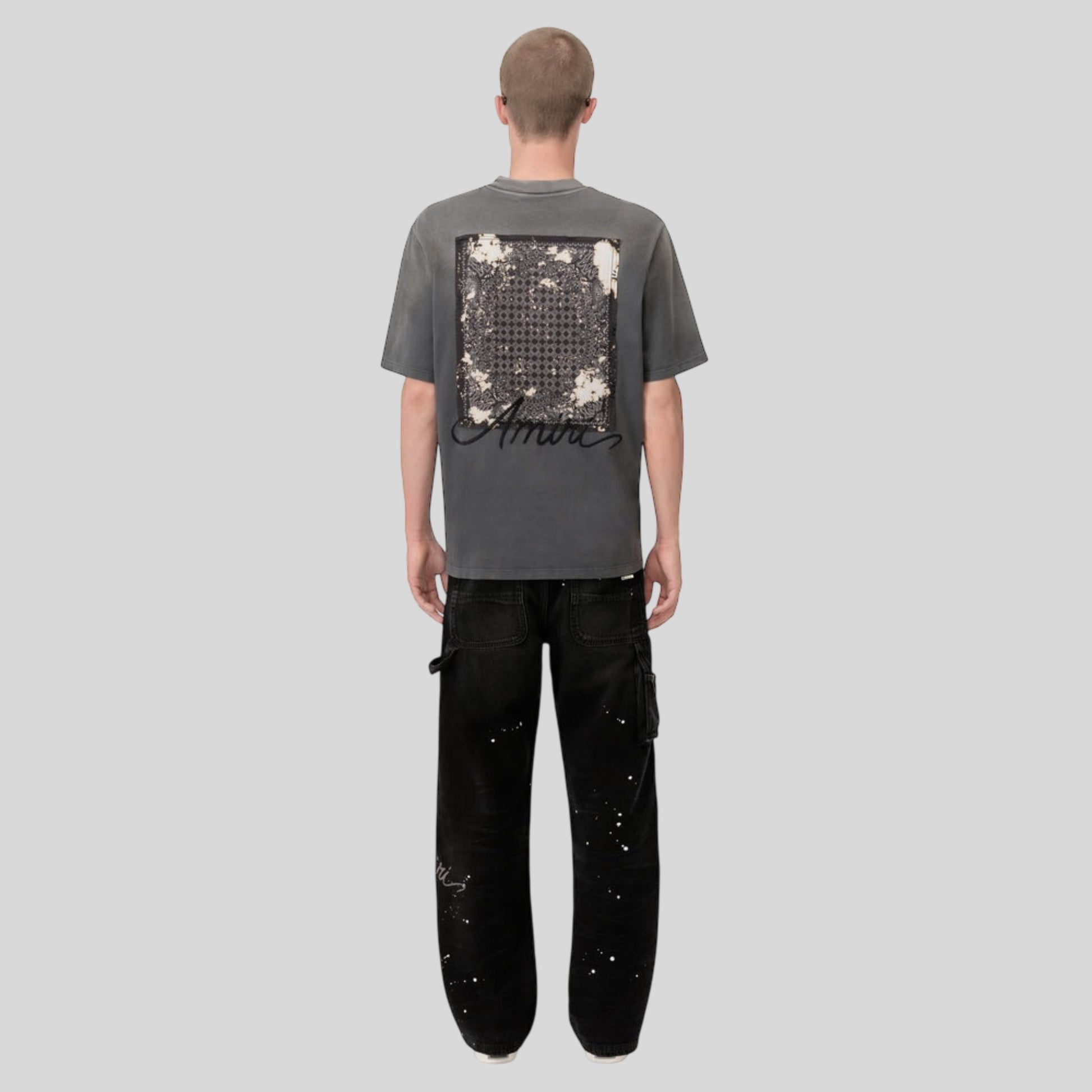 Playera Amiri En Color Negro Deslavado con Bordado