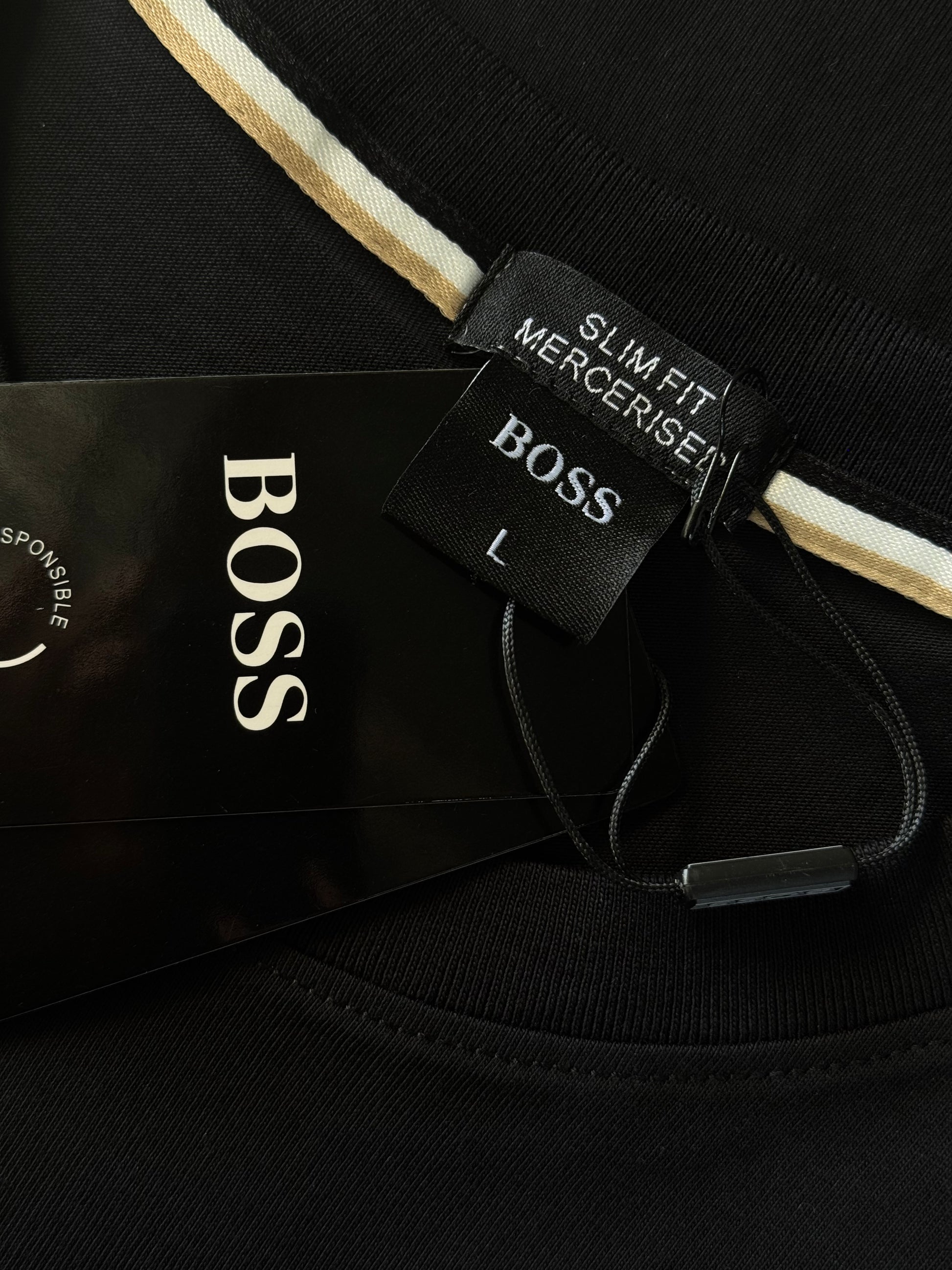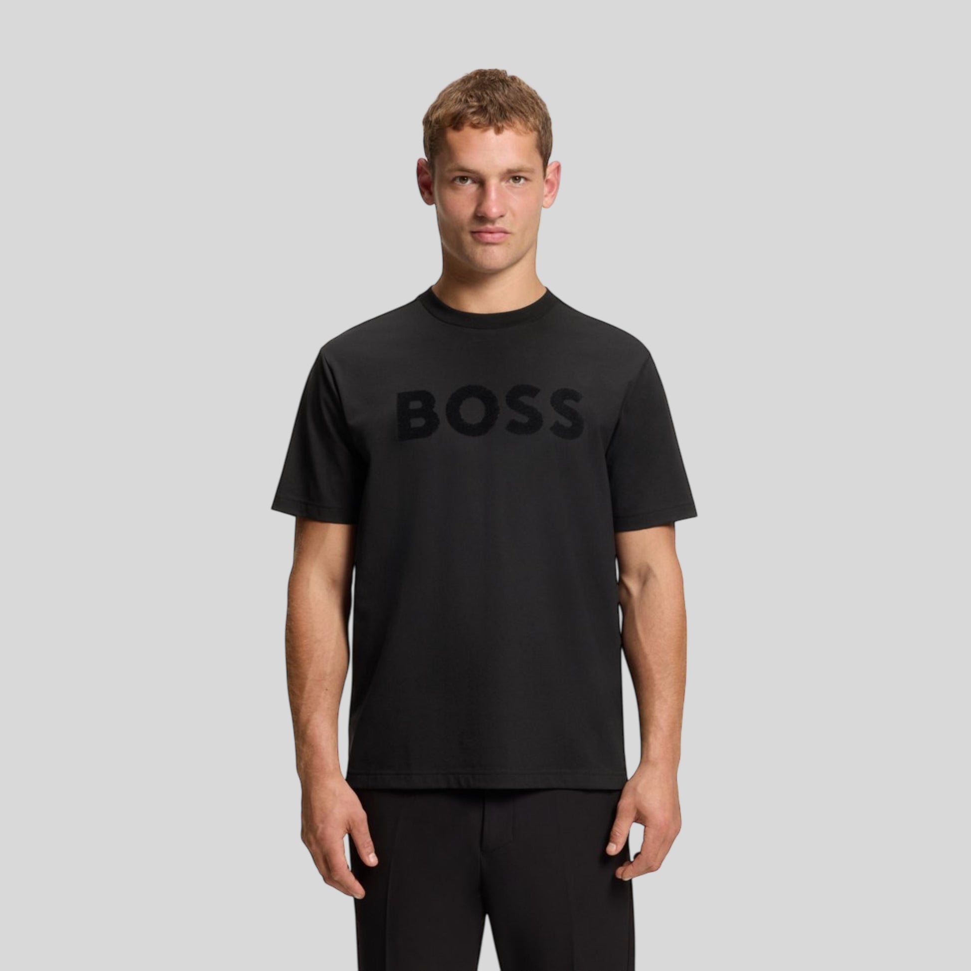 Playera Boss En Color Negro Con Estampado Efecto Gamuza