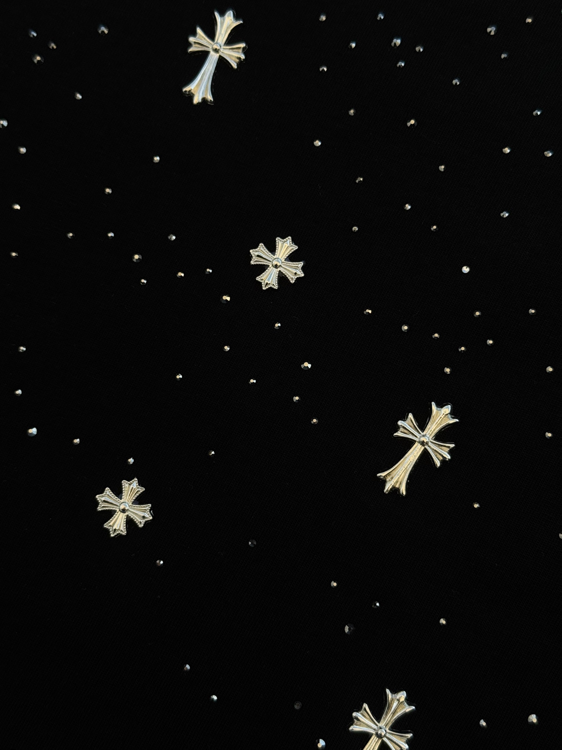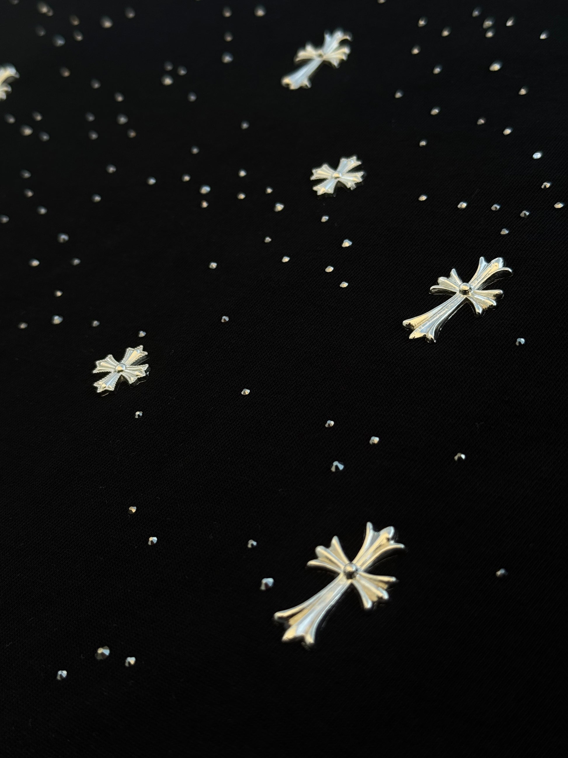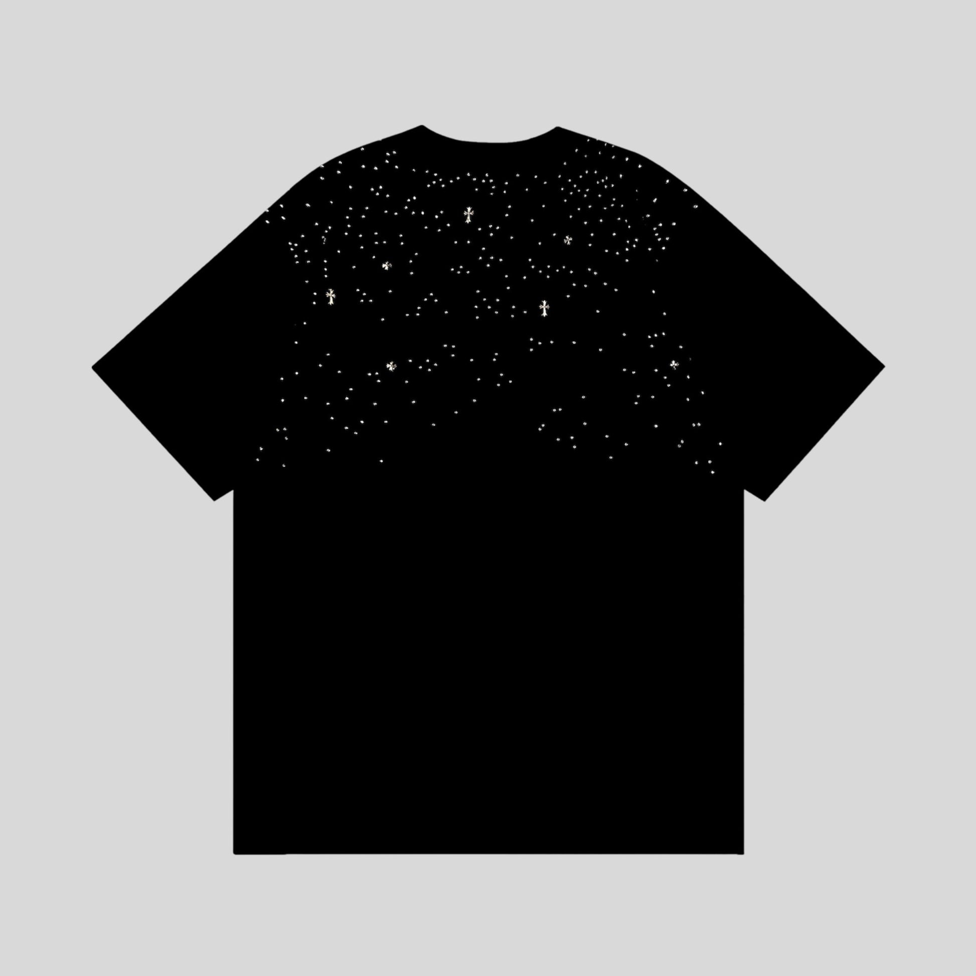 Playera Chrome Hearts En Color Negro con Aplicaciones y Brillos
