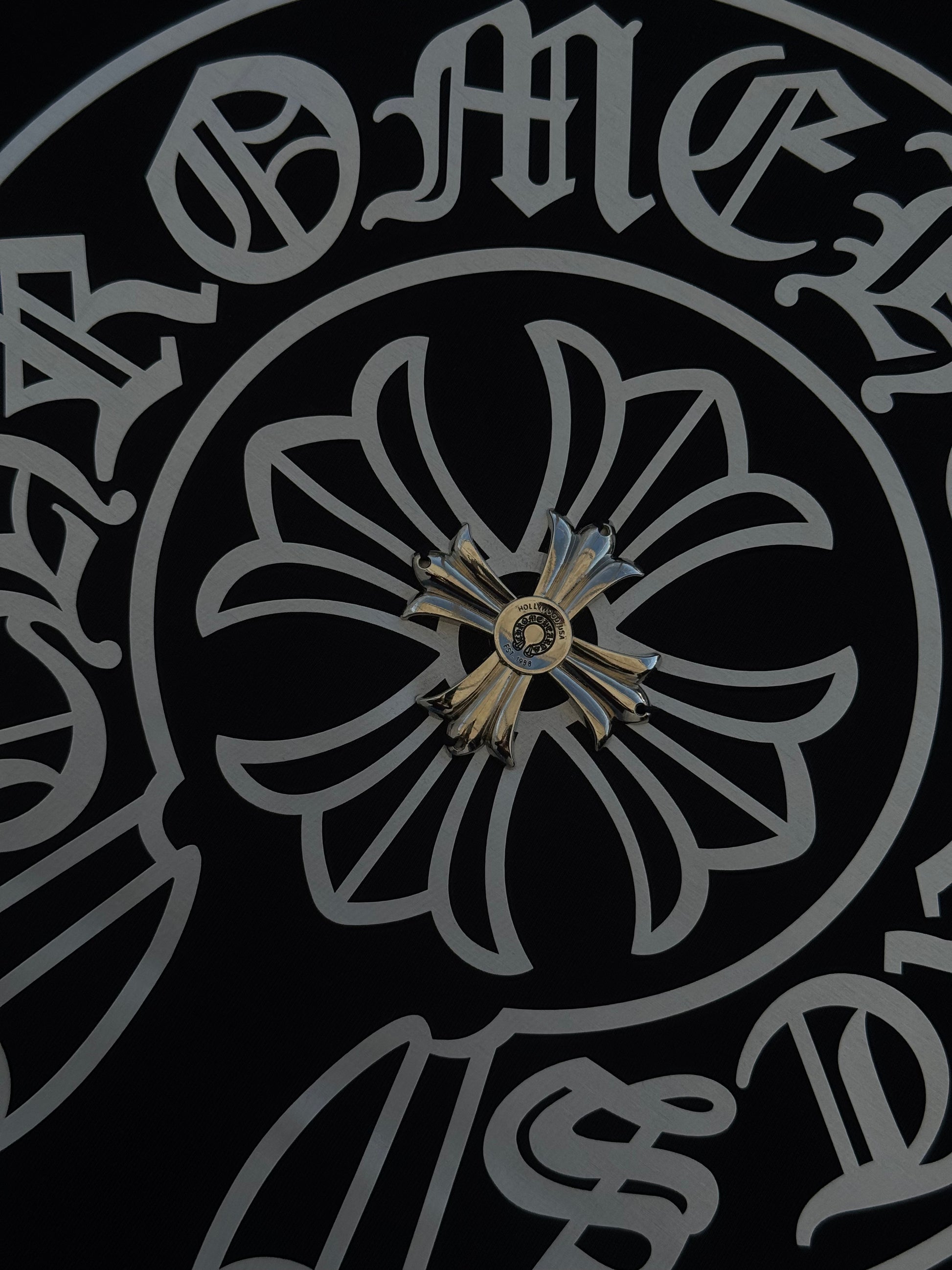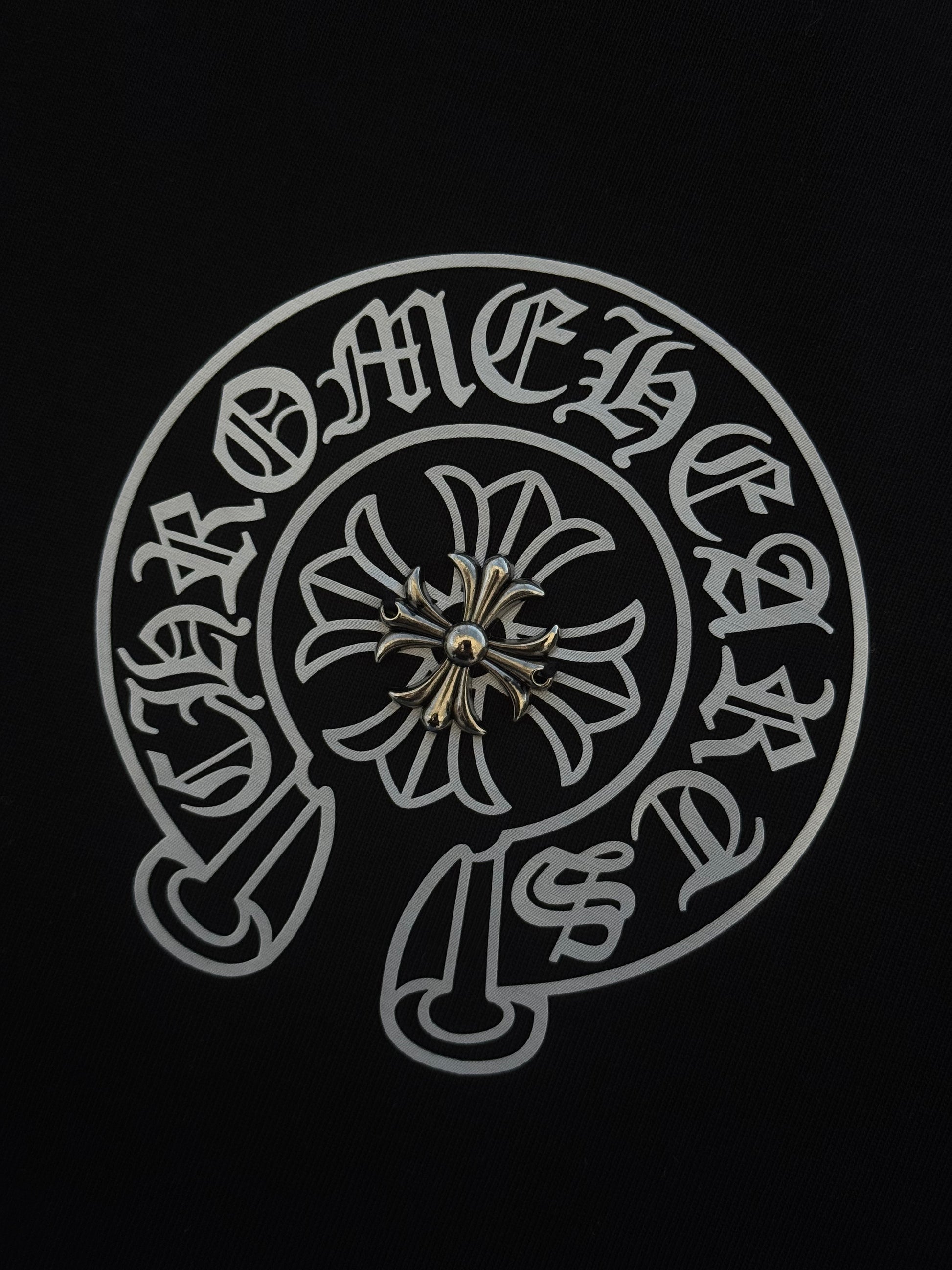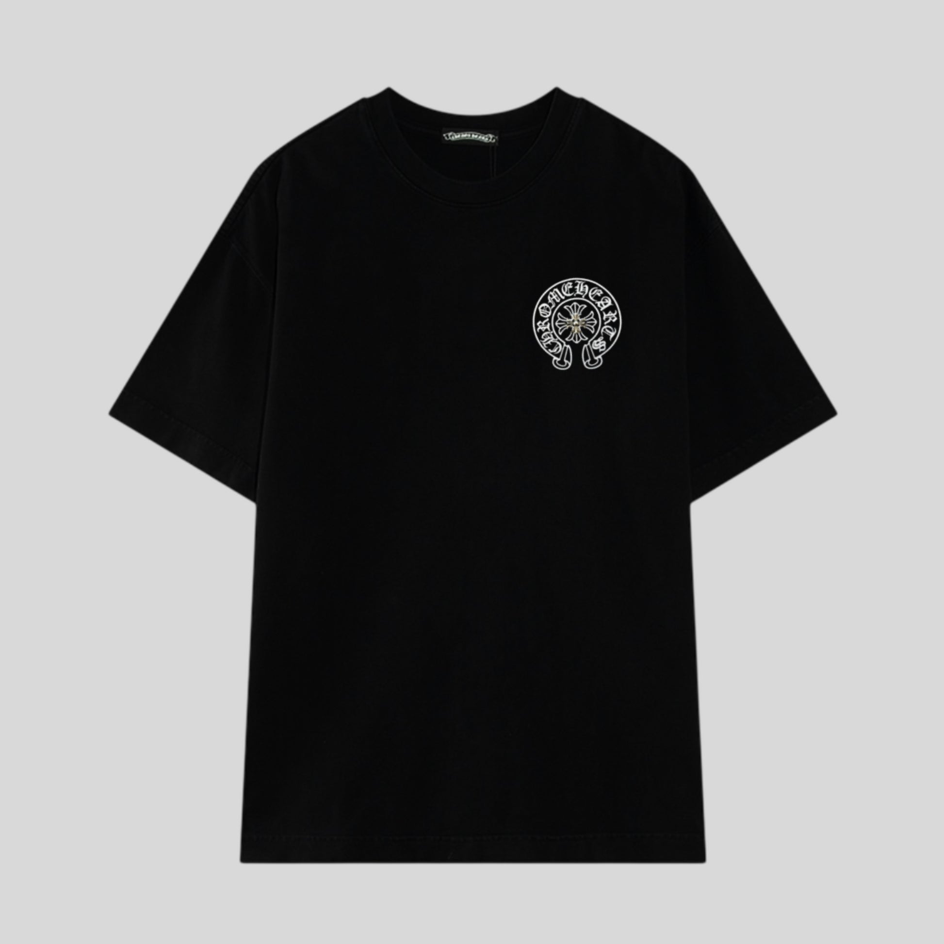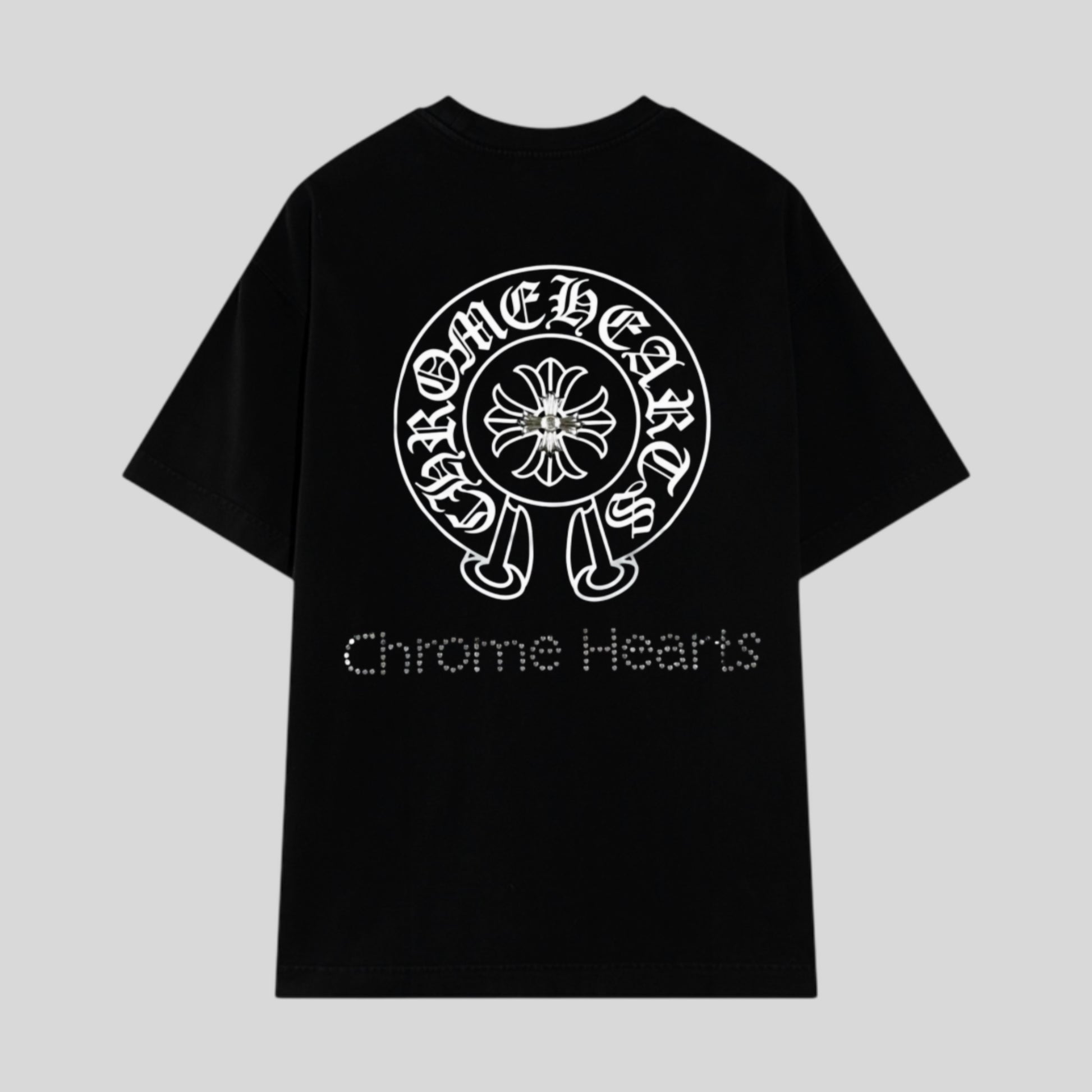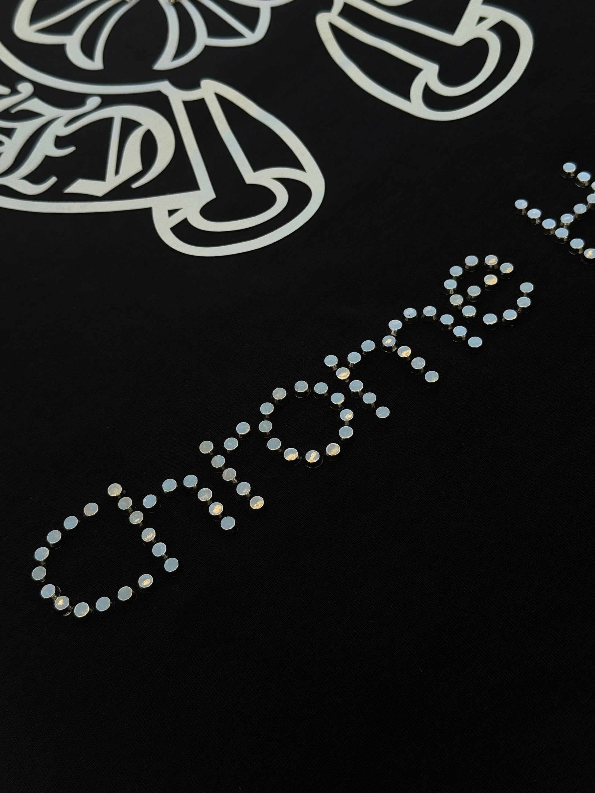 Playera Chrome Hearts En Color Negro con Estampado y Aplicaciones en Metal