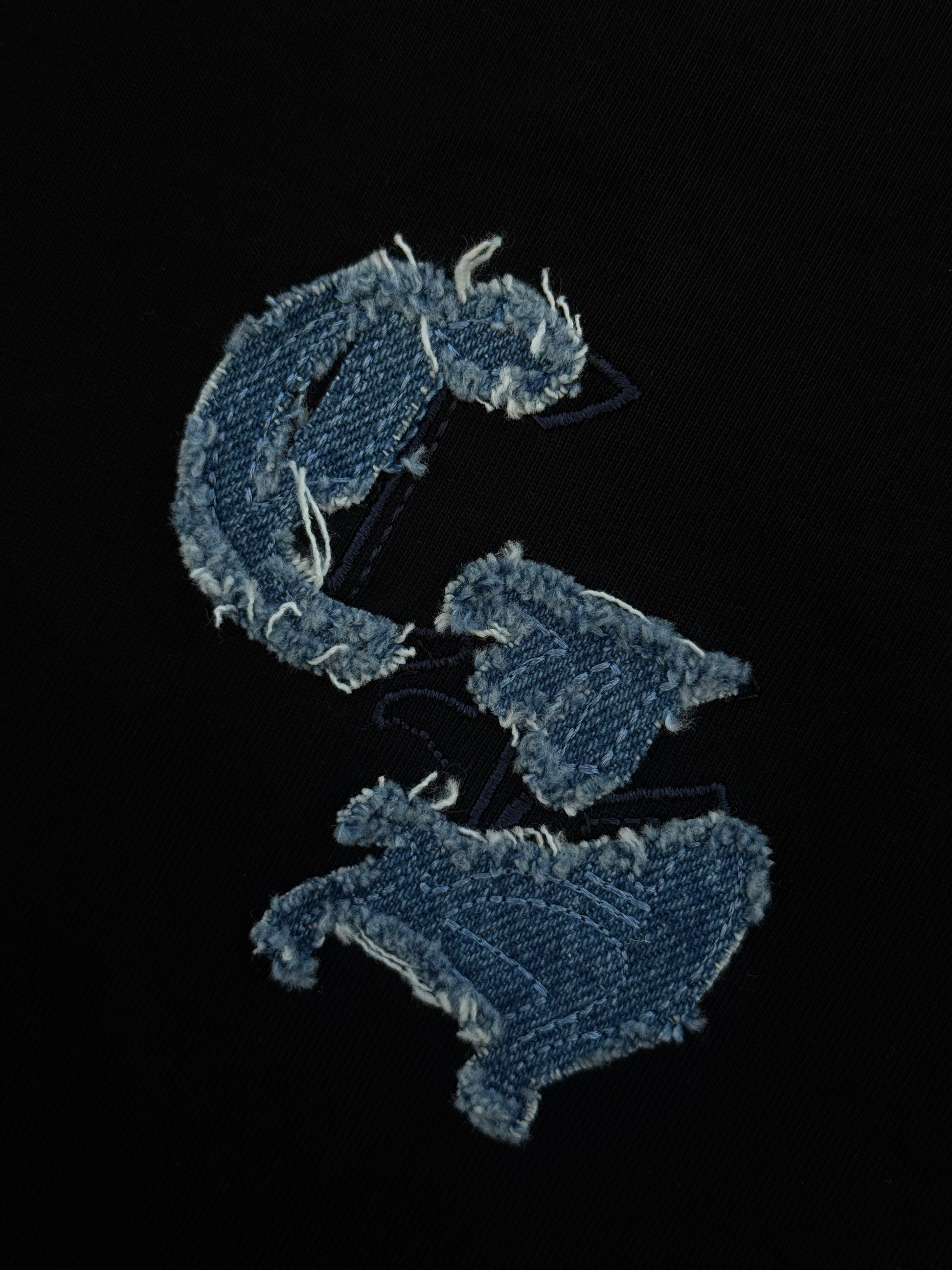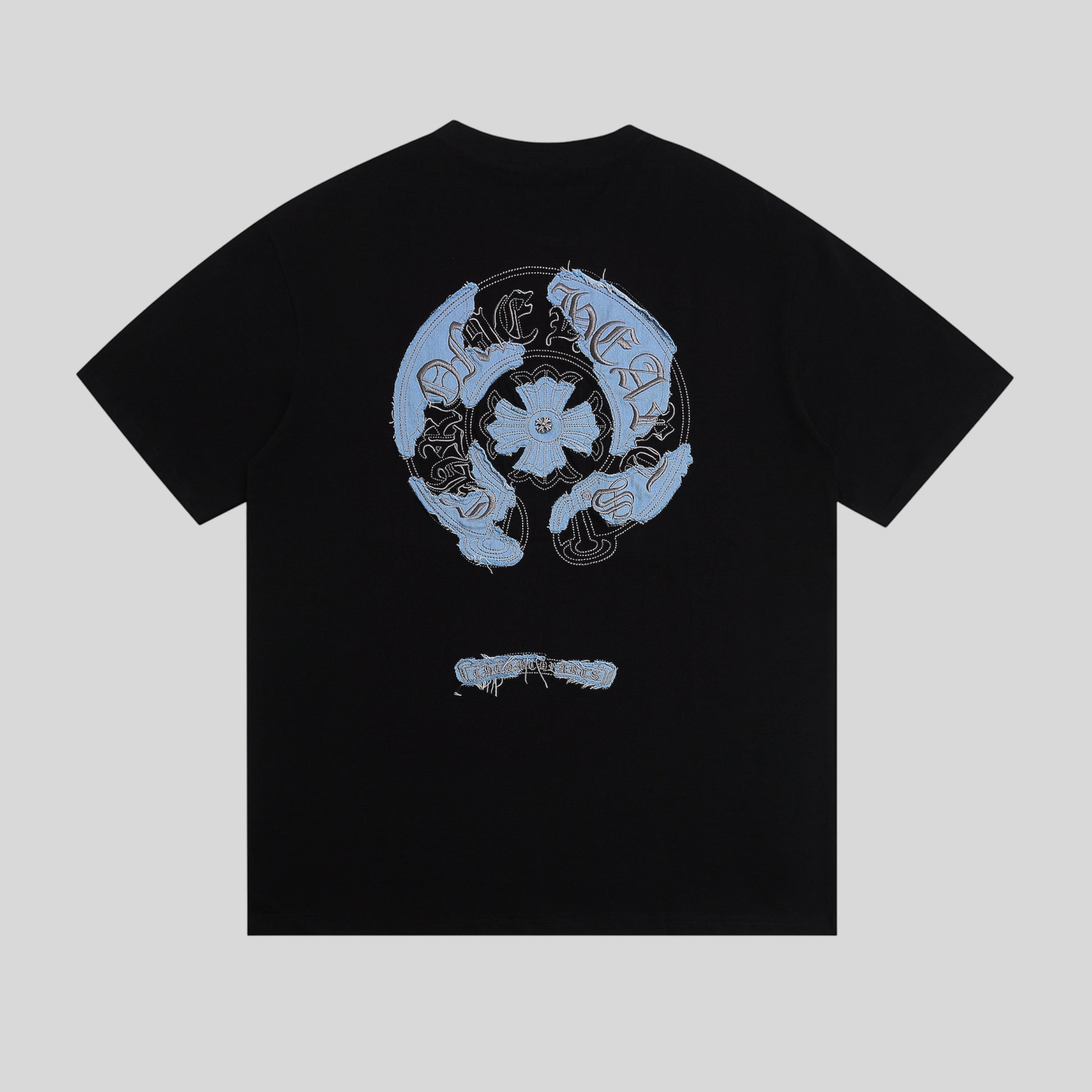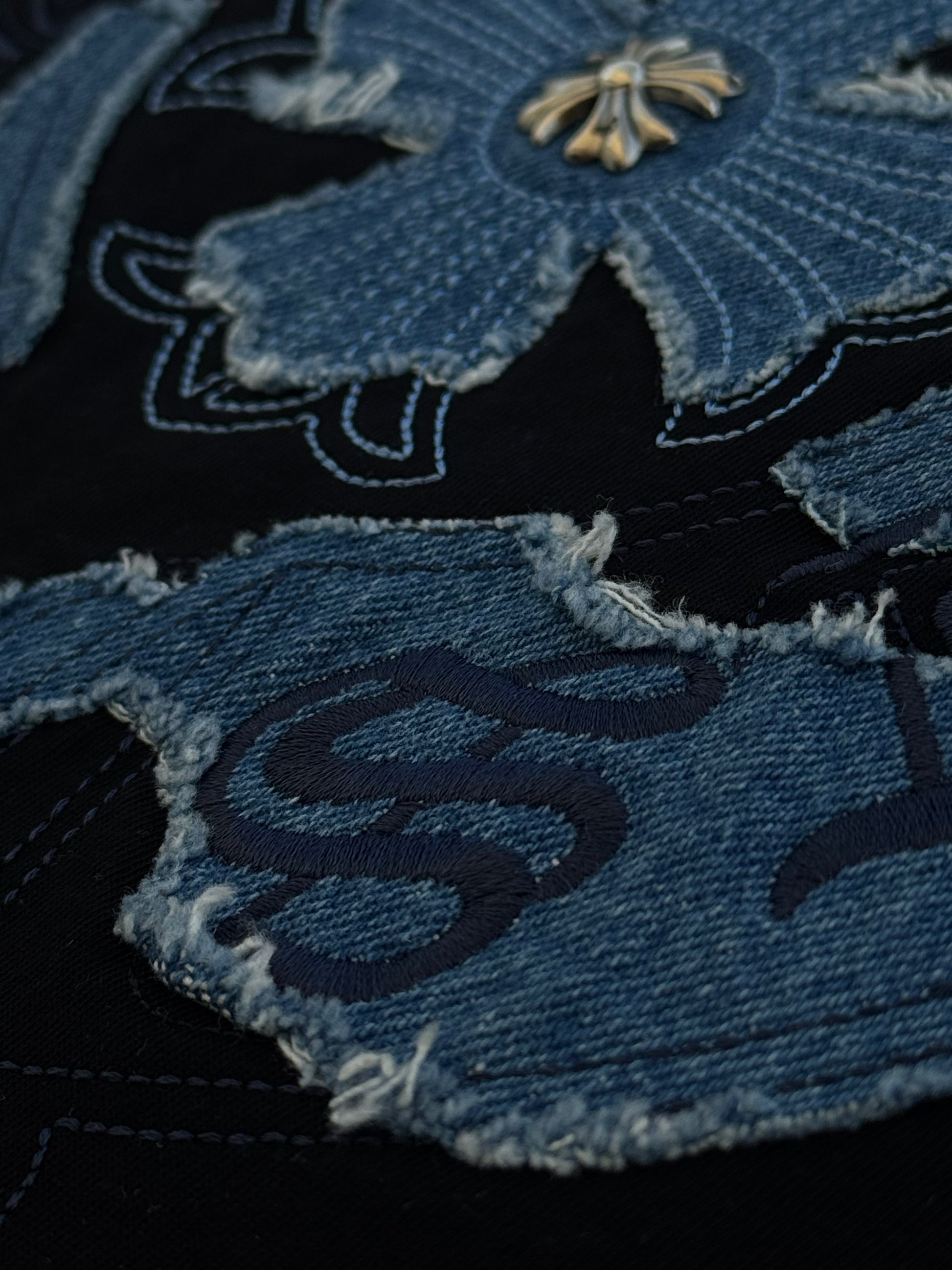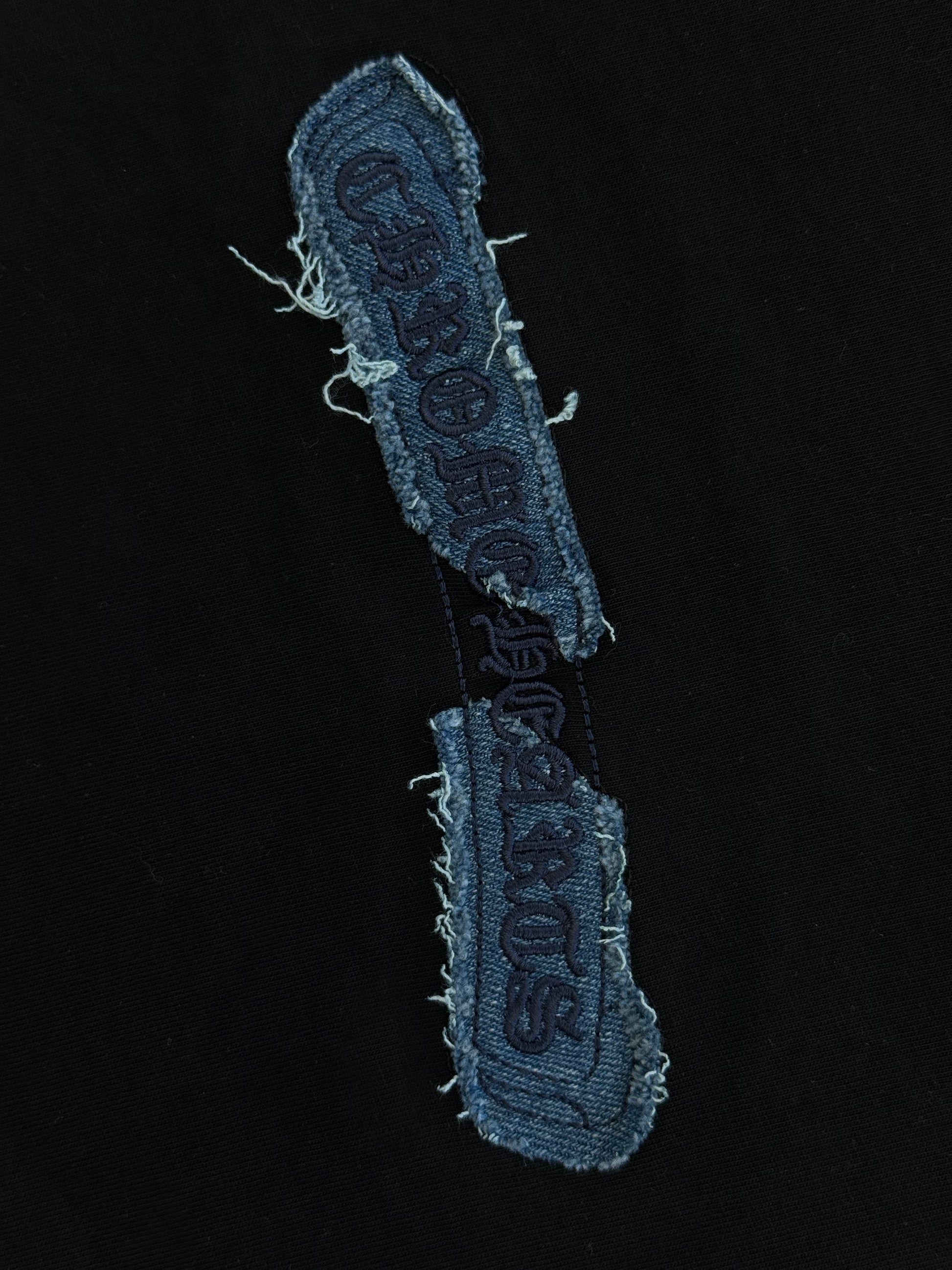 Playera Chrome Hearts En Color Negro con Bordado y Mezclilla