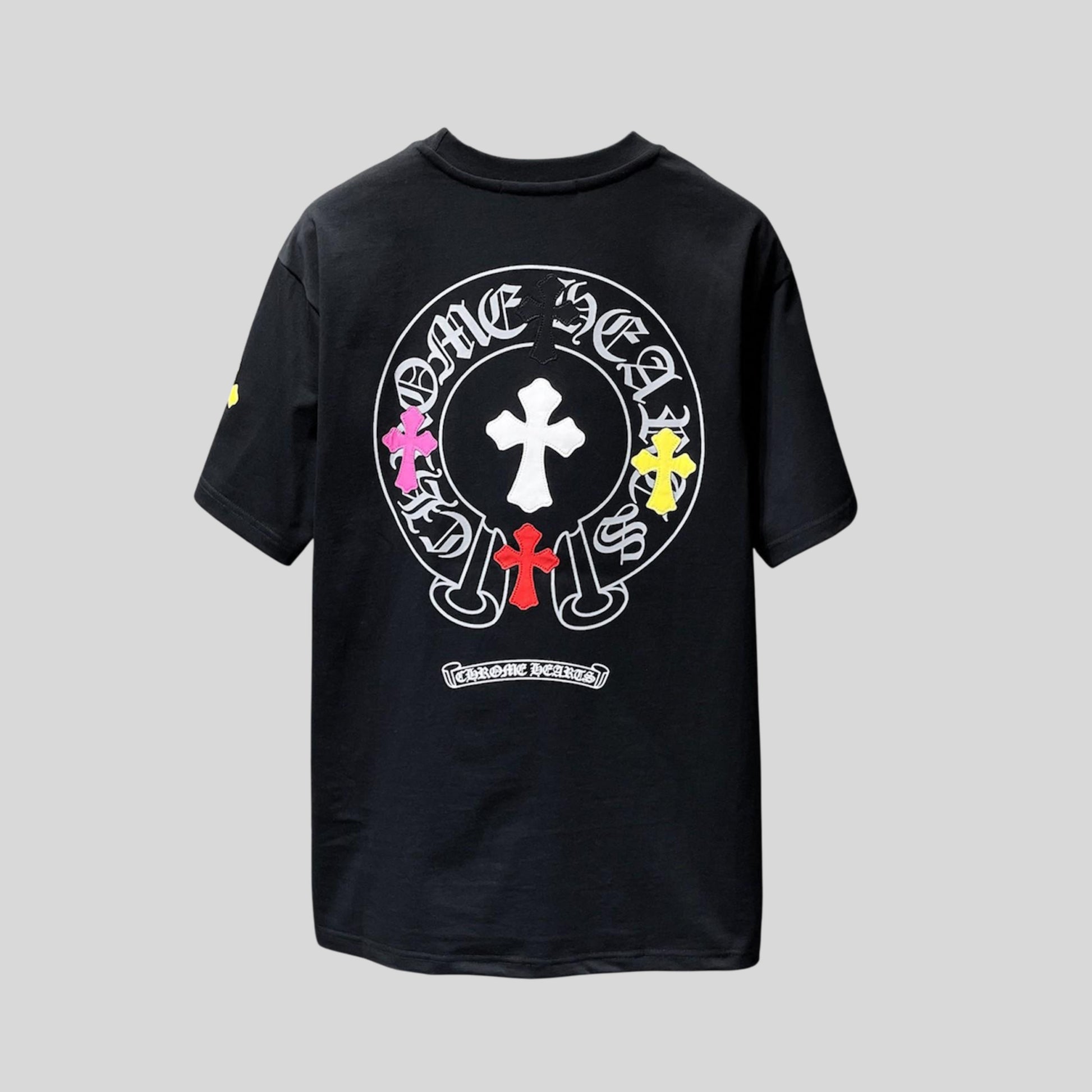 Playera Chrome Hearts En Color Negro con Estampado Y Bordado