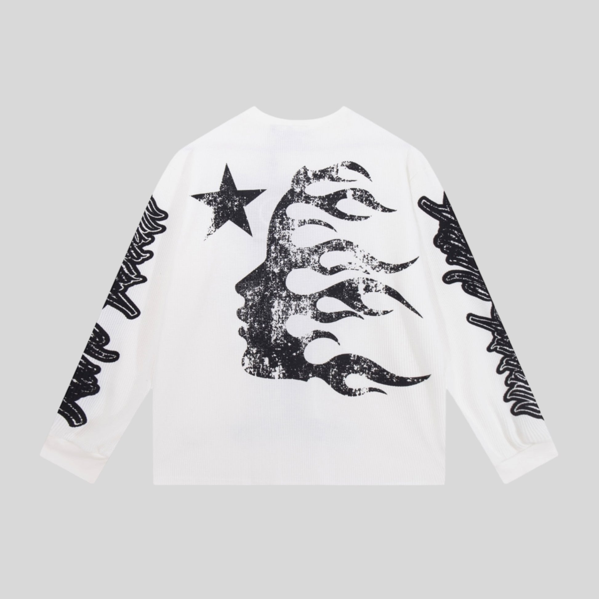 Playera Hellstar Manga Larga En Color Blanco con Estampado