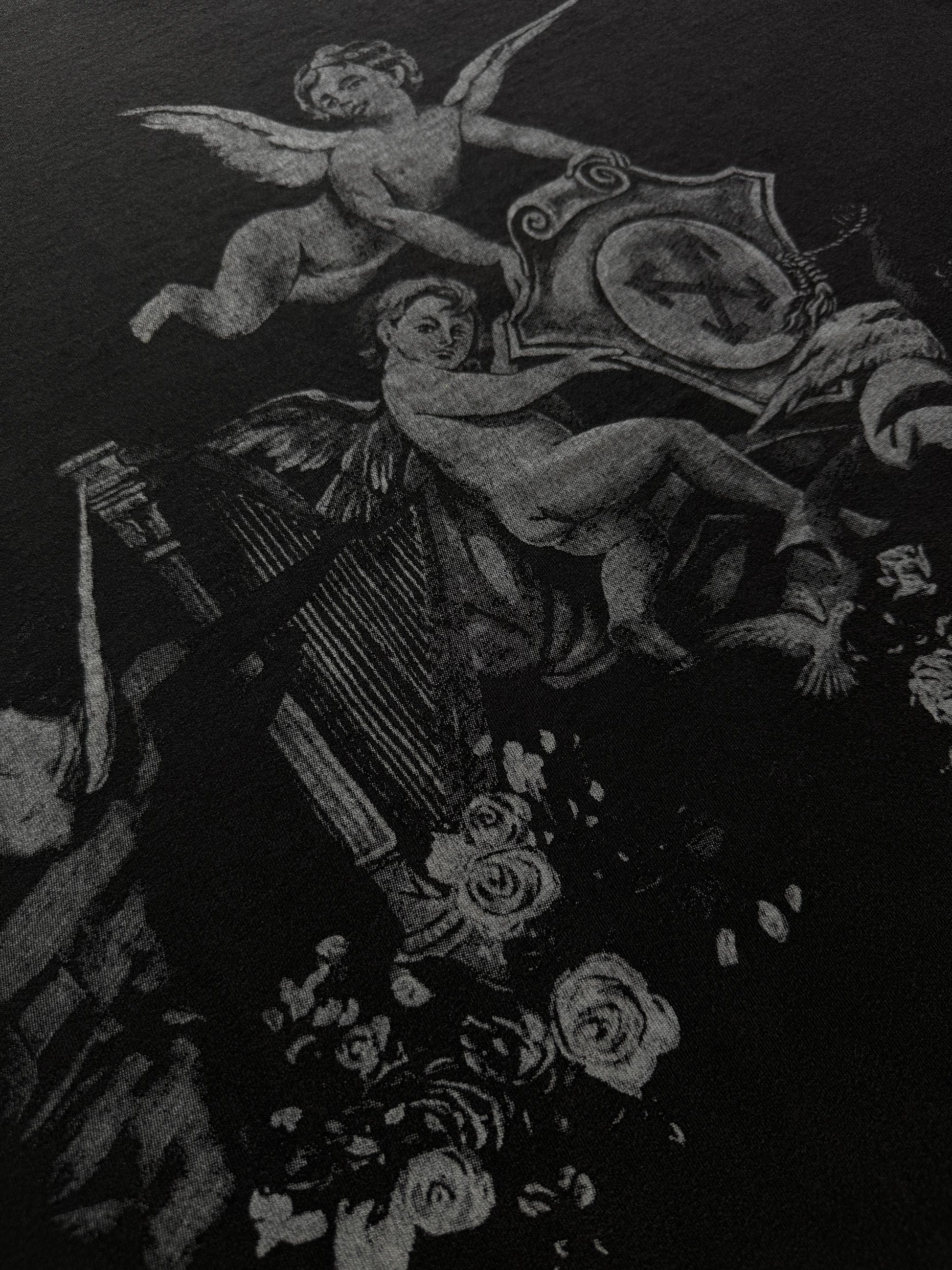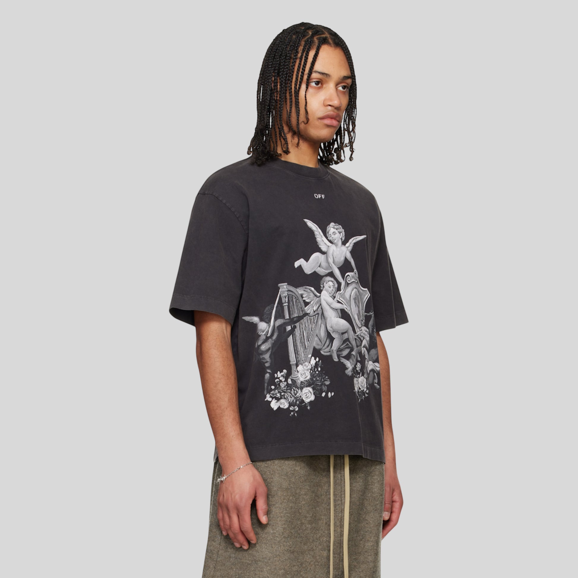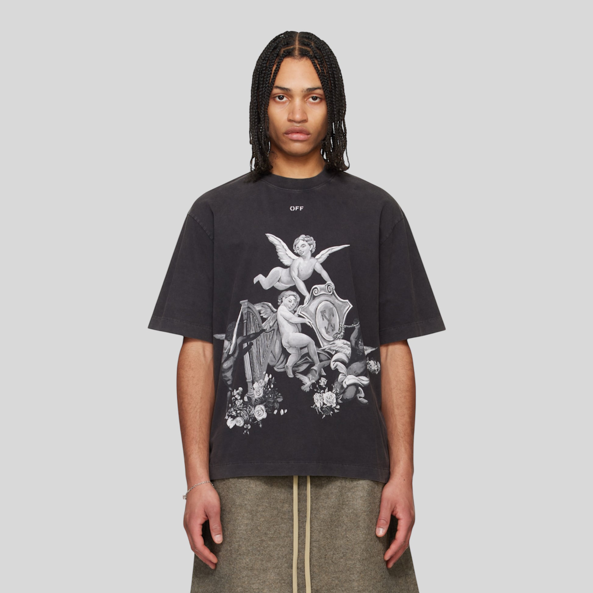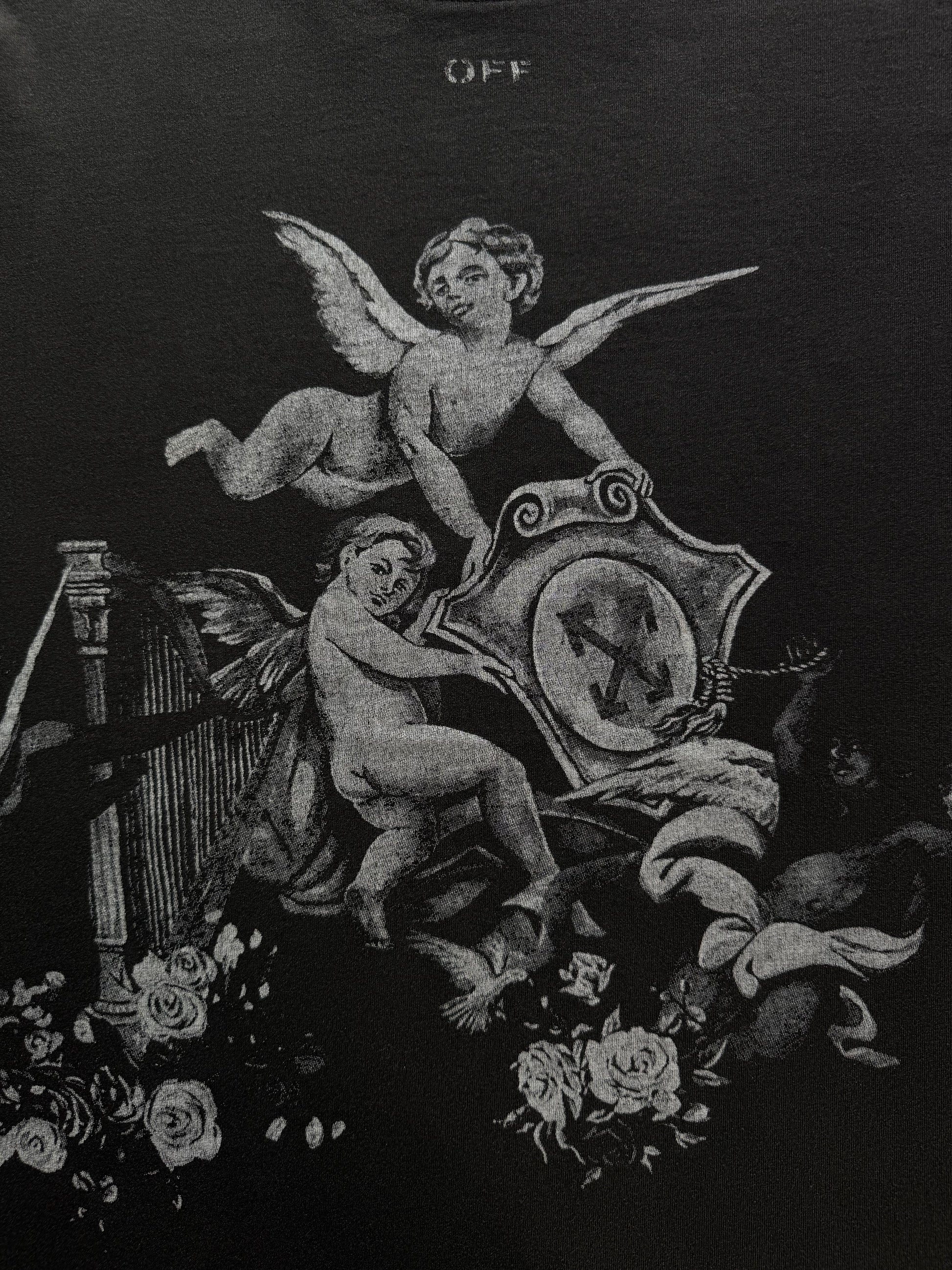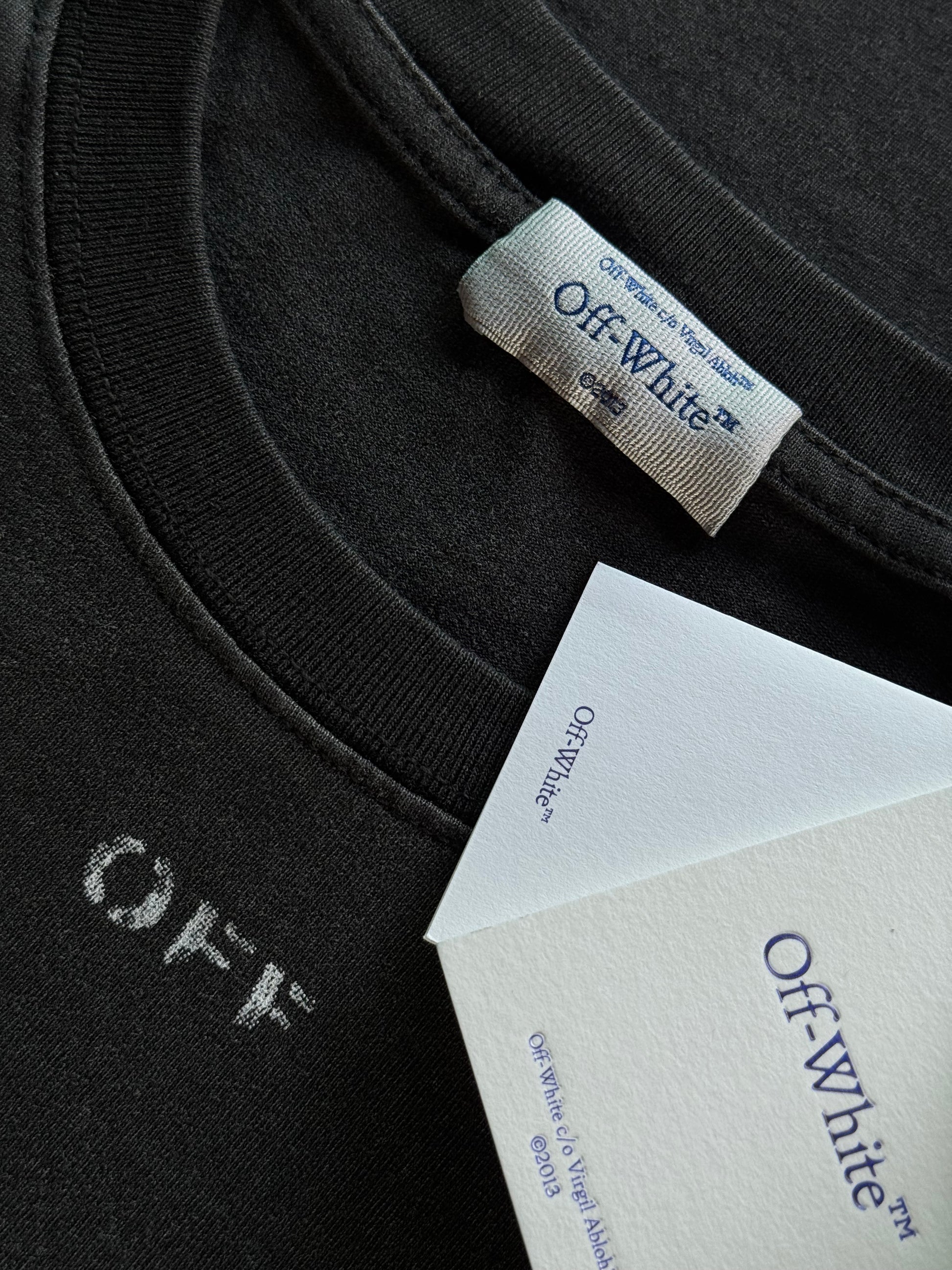 Playera Off White En Color Negro con Estampado y Efecto Washed