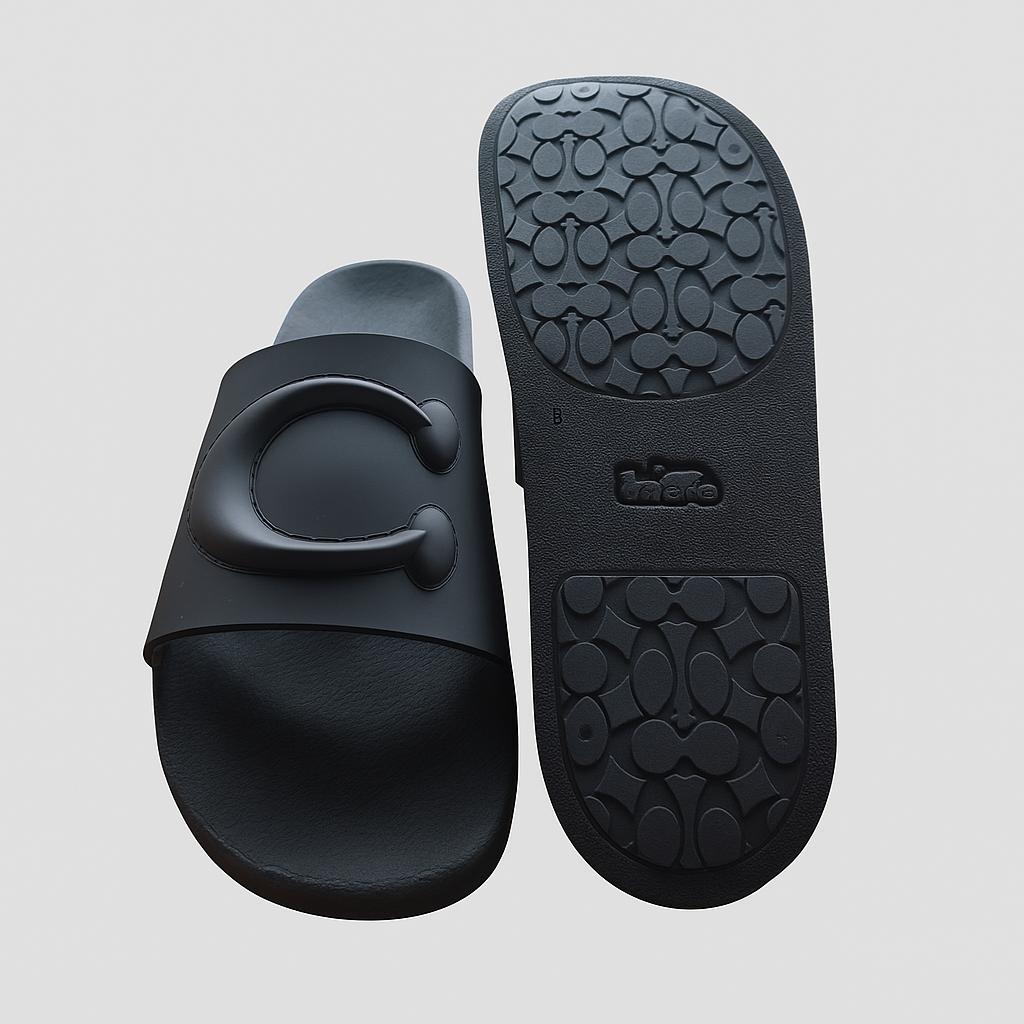 Sandalia Coach en color negro con detalle en relieve de la mejor calidad.