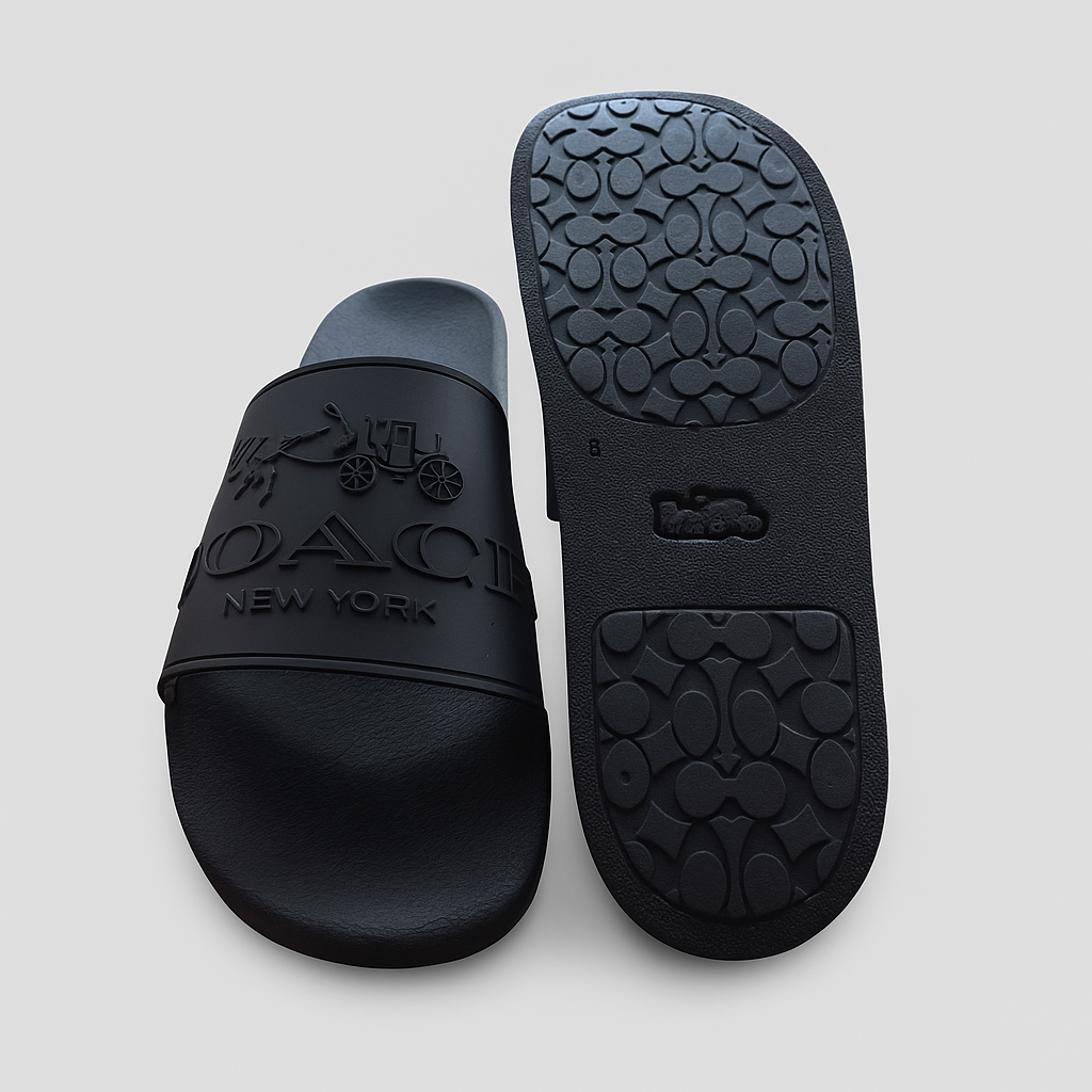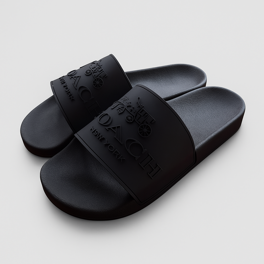 Sandalia Coach en color negro con detalle en relieve de la mejor calidad.