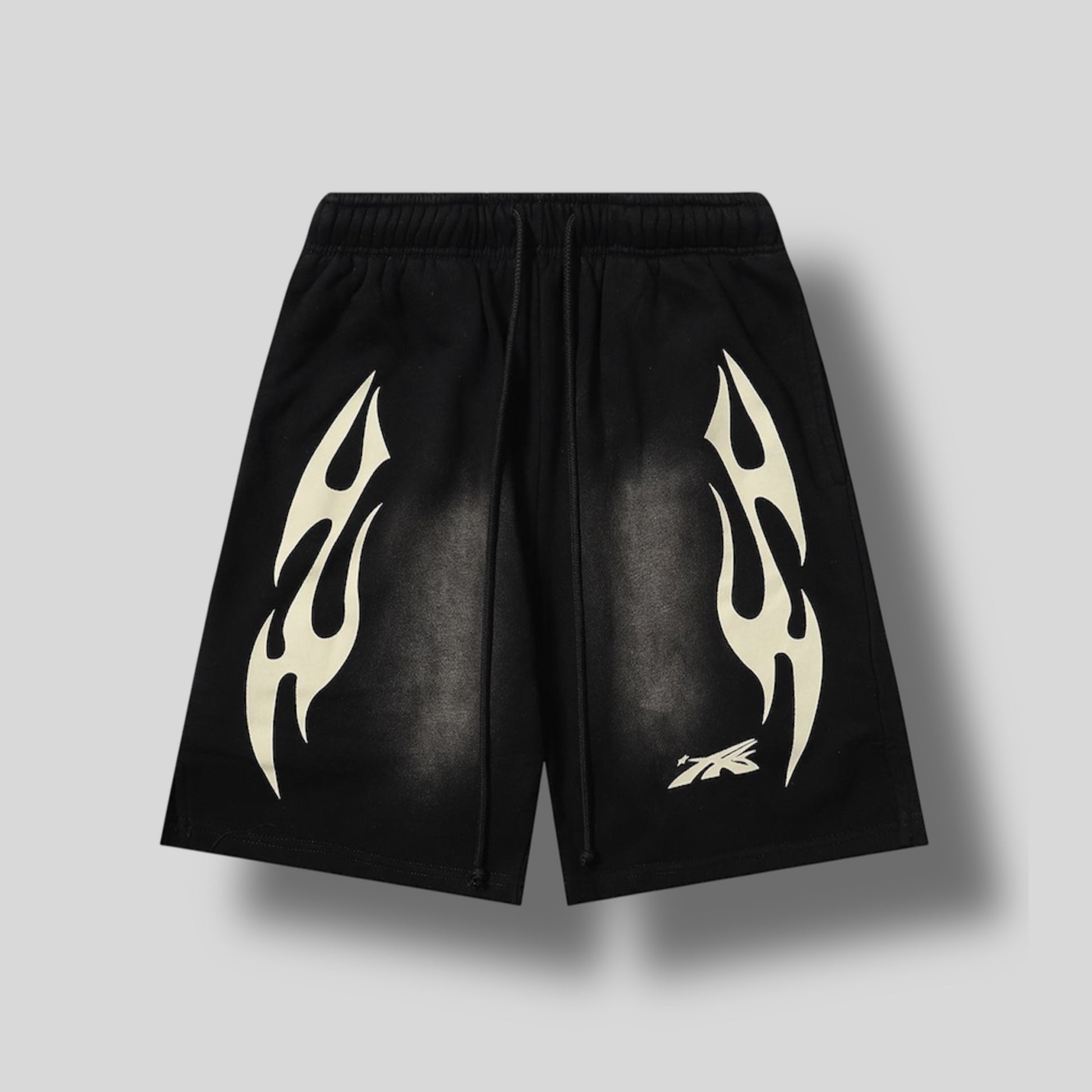Short Hellstar En Color Negro con Estampado y Efecto Washed