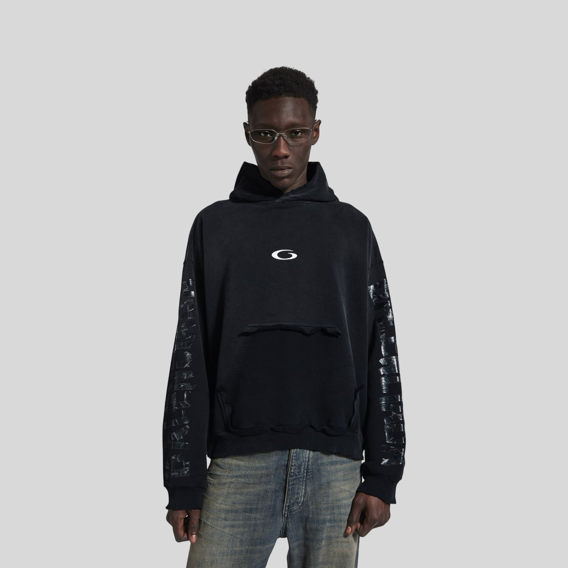 Chamarra BALENCIAGA En Color Negro Deslavado con BORDADOS